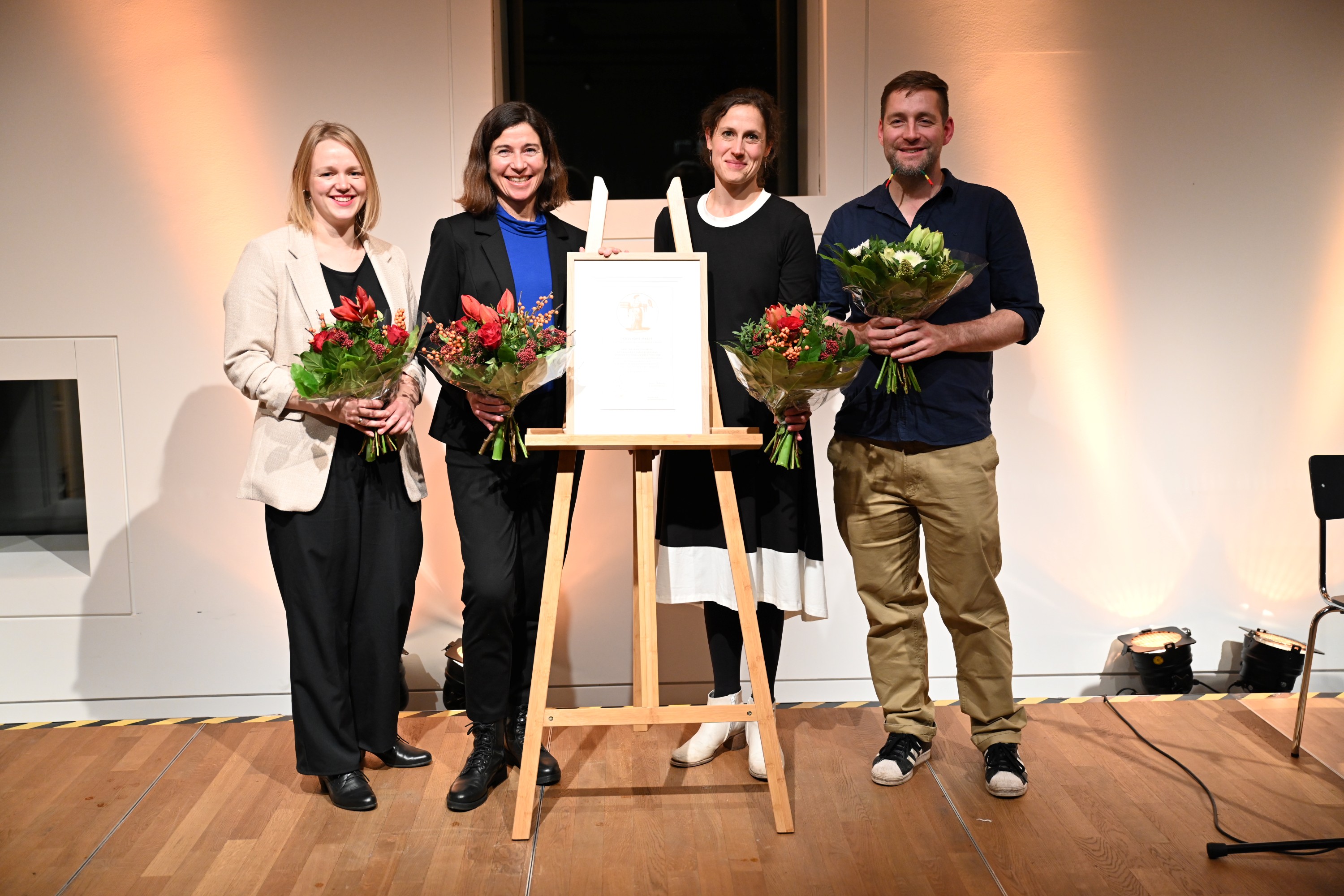 Forschende der TU Chemnitz bei der Preisverleihung des Kalliope-Preises, Dezember 2023 (v. l. n. r.): Dr. Hanne Schneider, Prof. Dr. Birgit Glorius, Dr. Friederike Enßle-Reinhardt, Stephan Schurig.