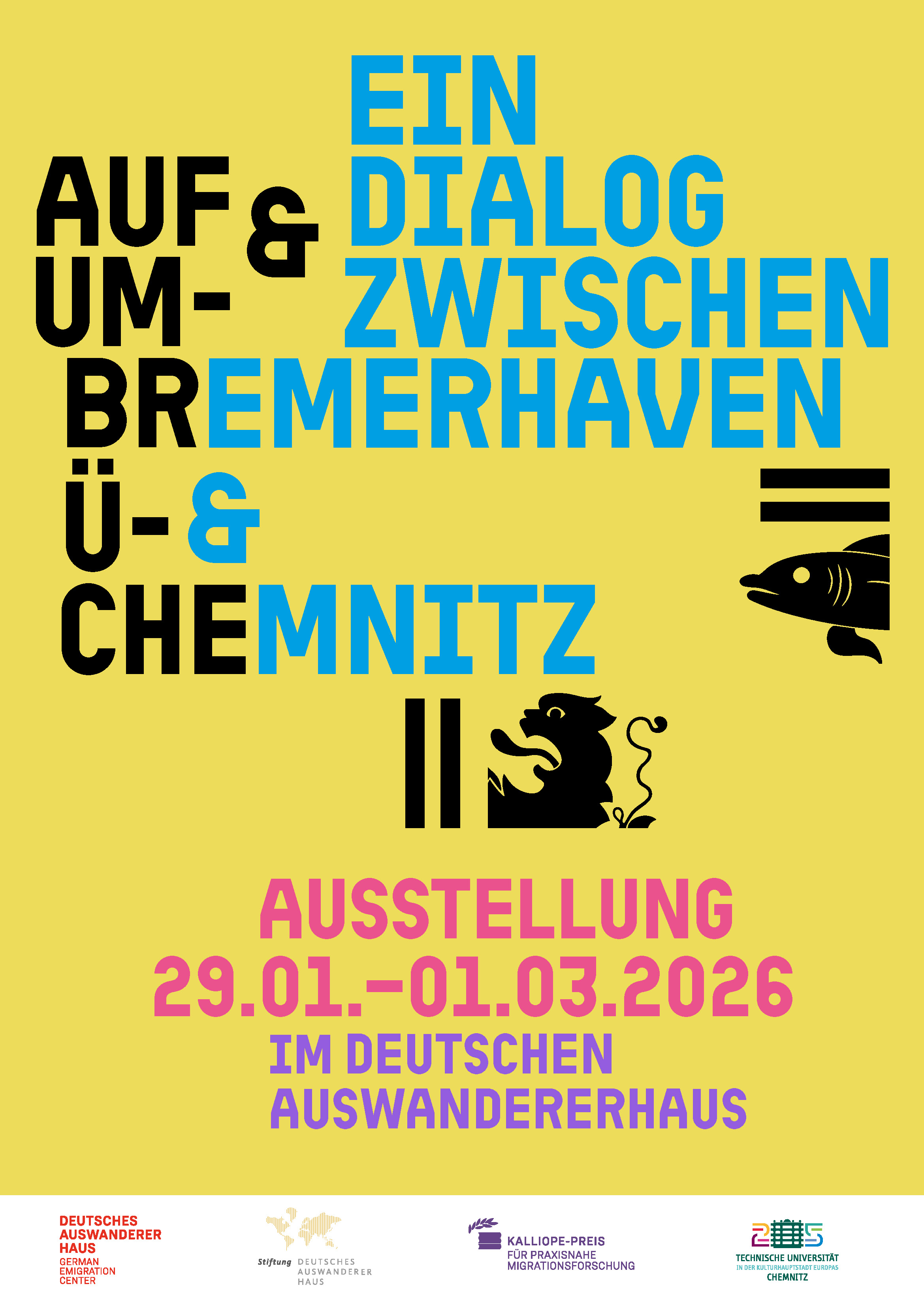 Ab 29. Januar 2026 eigene Stadtgeschichte mit neuen Augen sehen: Dazu lädt die Ausstellung “Aufbrüche – Umbrüche: Ein Dialog zwischen Bremerhaven und Chemnitz“ im Deutschen Auswandererhaus ein. Sie zeigt Bremerhaven und Chemnitz als Städte, deren Geschichte und Gegenwart von Zu- und Abwanderung geprägt sind, und macht deutlich: Migration ist kein Randthema, sondern ein zentrales Element urbaner Entwicklung als solche.Die Ausstellung entstand als Kooperation mit der Professur Humangeographie mit Schwerpunkt Europäische Migrationsforschung der Technischen Universität Chemnitz. Sie verbindet Stadtgeographie und Migrationsgeschichte von Bremerhaven und Chemnitz und gibt Interessierten Strategien an die Hand, in der eigenen Kommune auch selbst zur lokalen Migrationsgeschichte zu forschen.